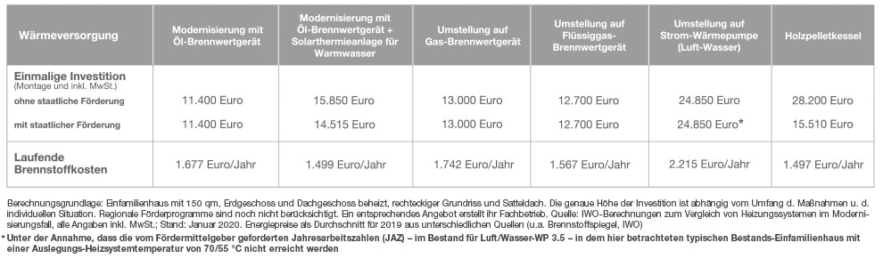 Die Modernisierung mit sparsamer Öl-Brennwerttechnik lohnt sich. Im Vergleich zu einem veralteten Heizkessel lässt sich der Brennstoffbedarf um bis zu 30 Prozent senken. Das schont nicht nur die Umwelt, sondern auch den Geldbeutel! Die Investitionskosten holen Sie durch den geringeren Heizölverbrauch wieder rein. Erst recht, wenn die Betriebskosten durch den geplanten CO2-Aufschlag ab 2021 ansteigen. Auch wenn es für die Umstellung auf andere Energien oftmals verlockende Austauschprämien gibt: Die Modernisierung mit Brennwerttechnik ist oft am günstigsten.